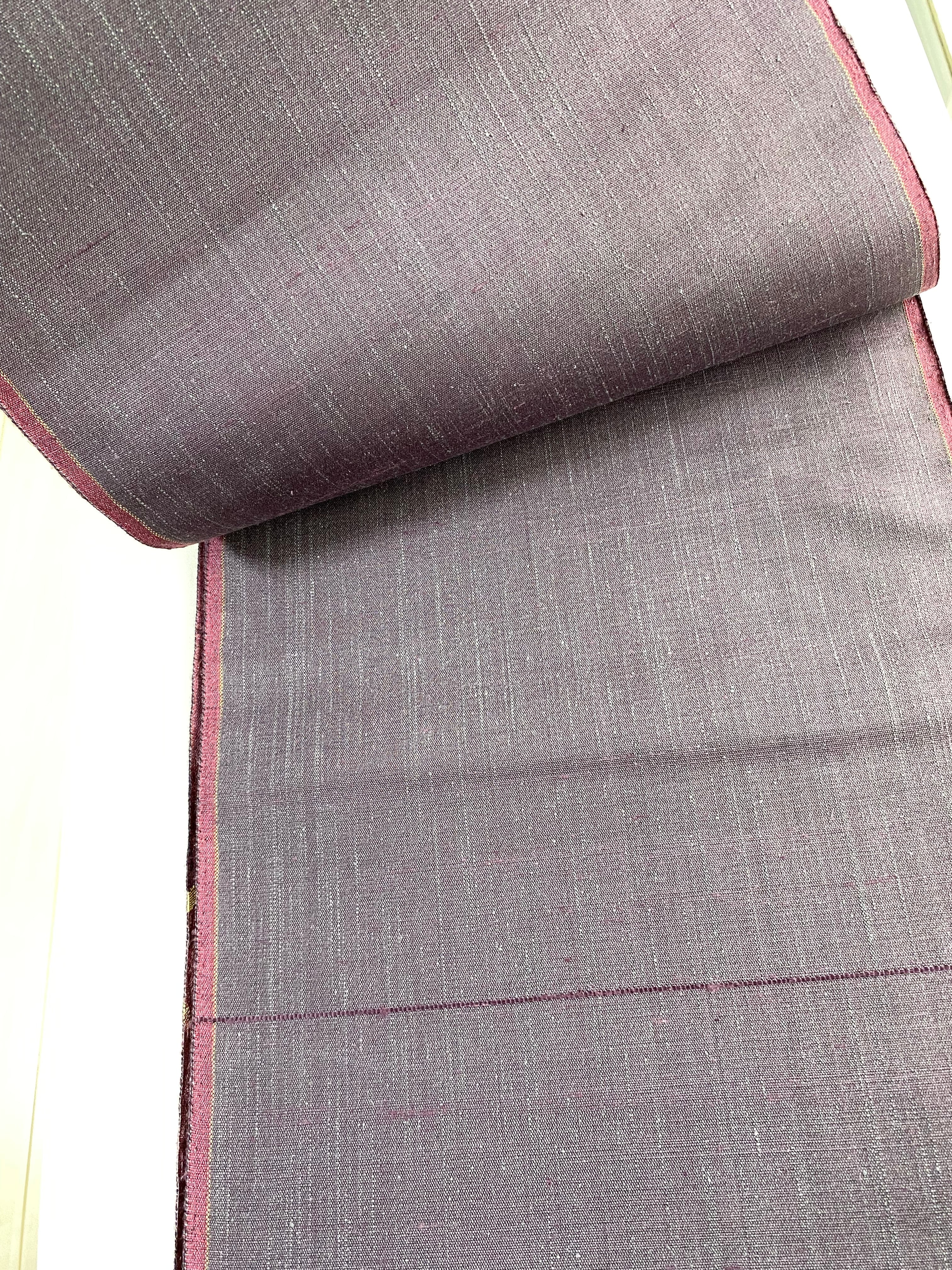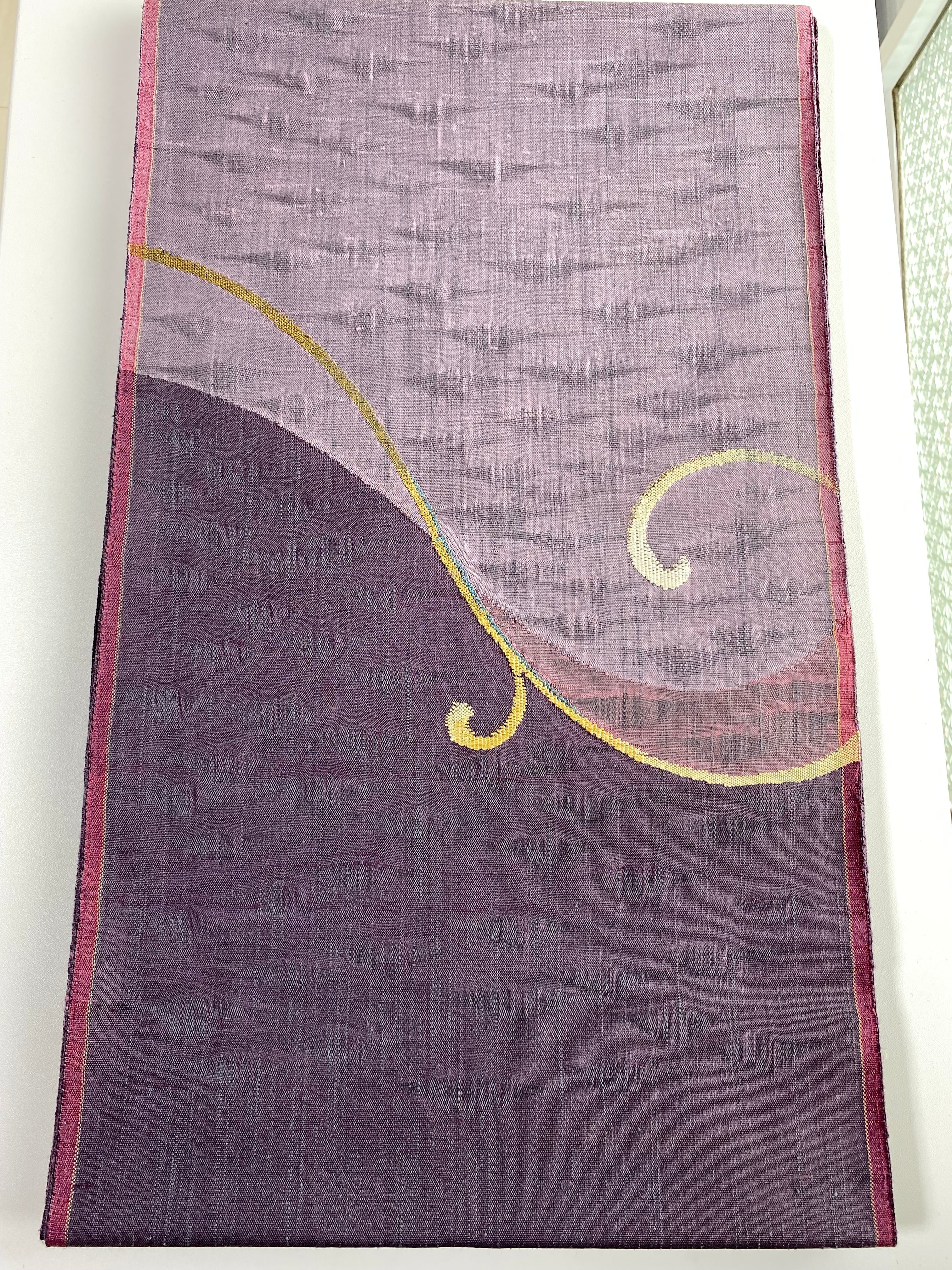 落ち着いた薄紫色の正絹 紬 洒落帯となります。