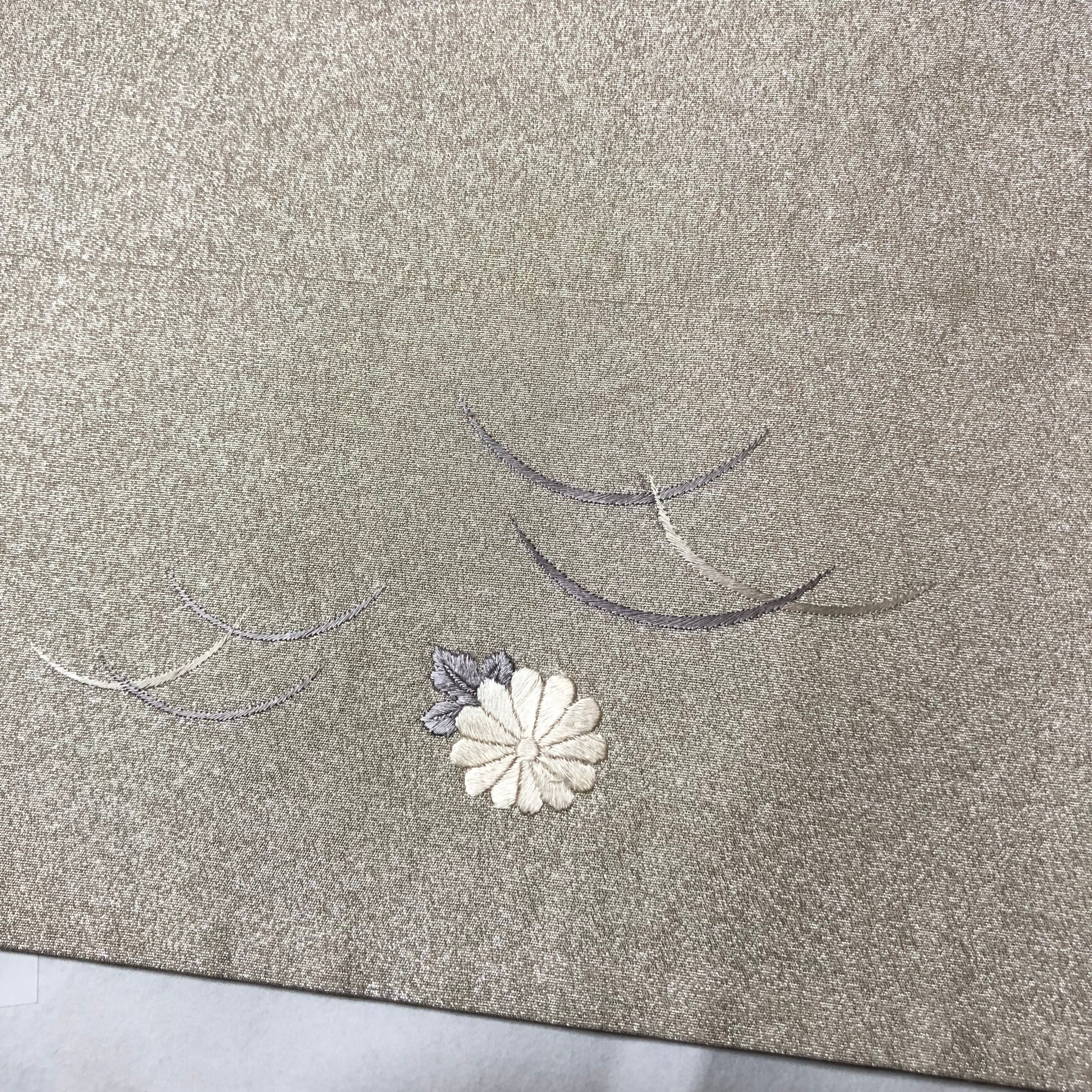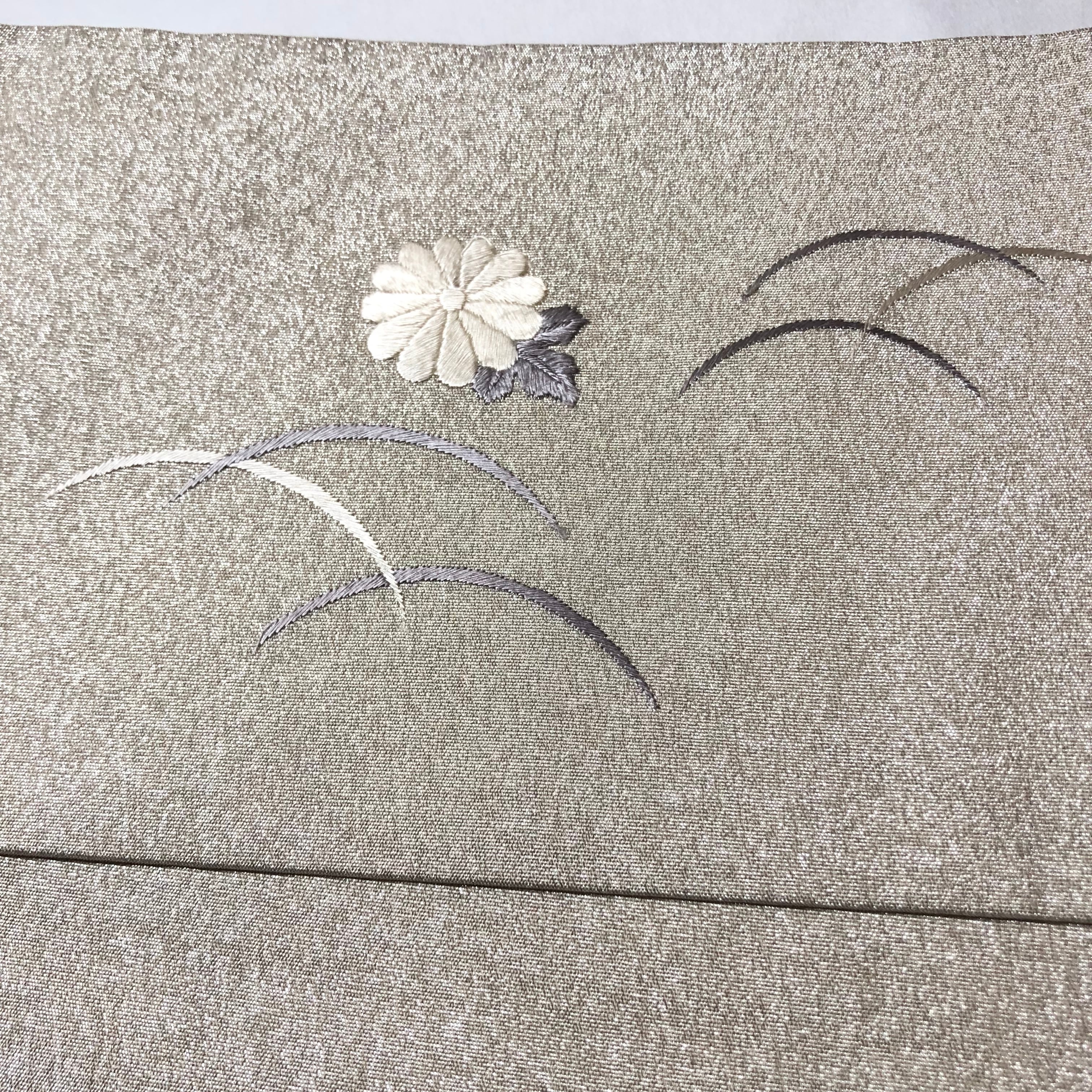 銀に輝く帯地に丁寧にほどこされた中国蘇州刺繍。