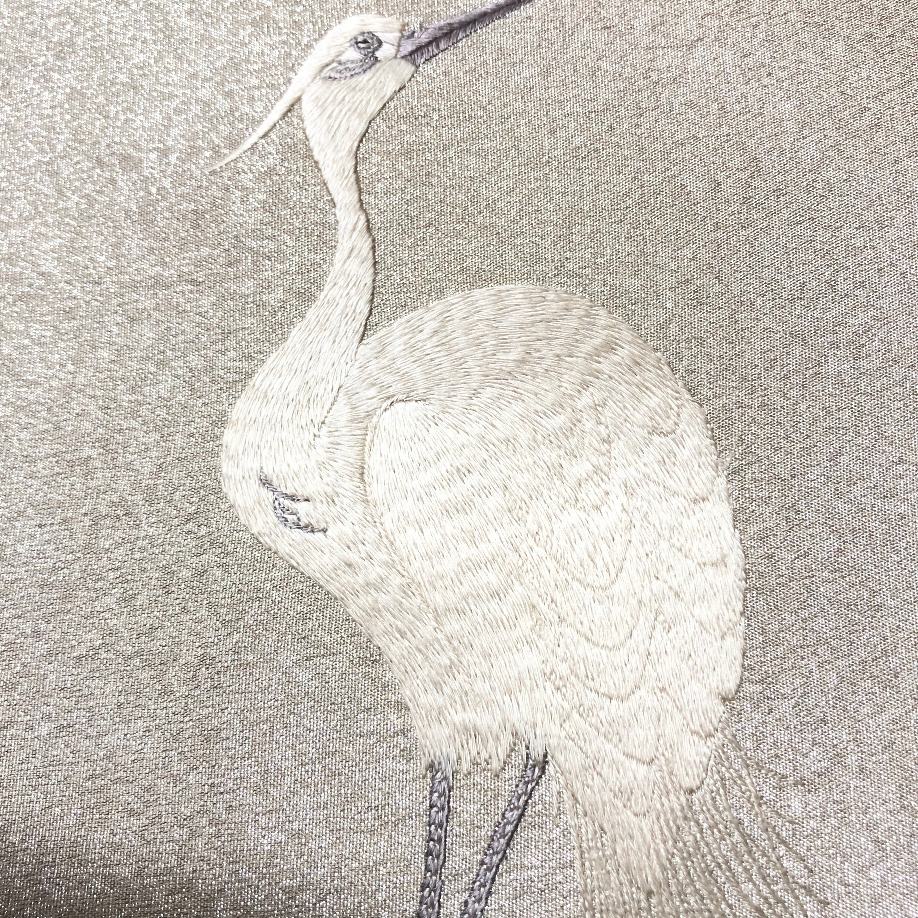 アンティーク 鷺 中国蘇州刺繍名古屋帯 正絹