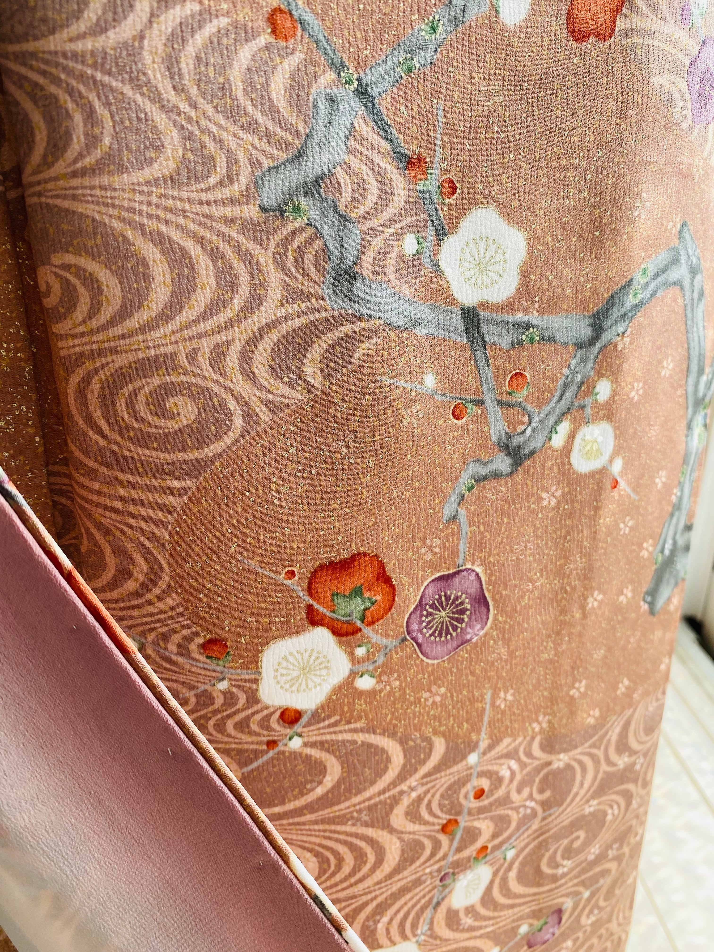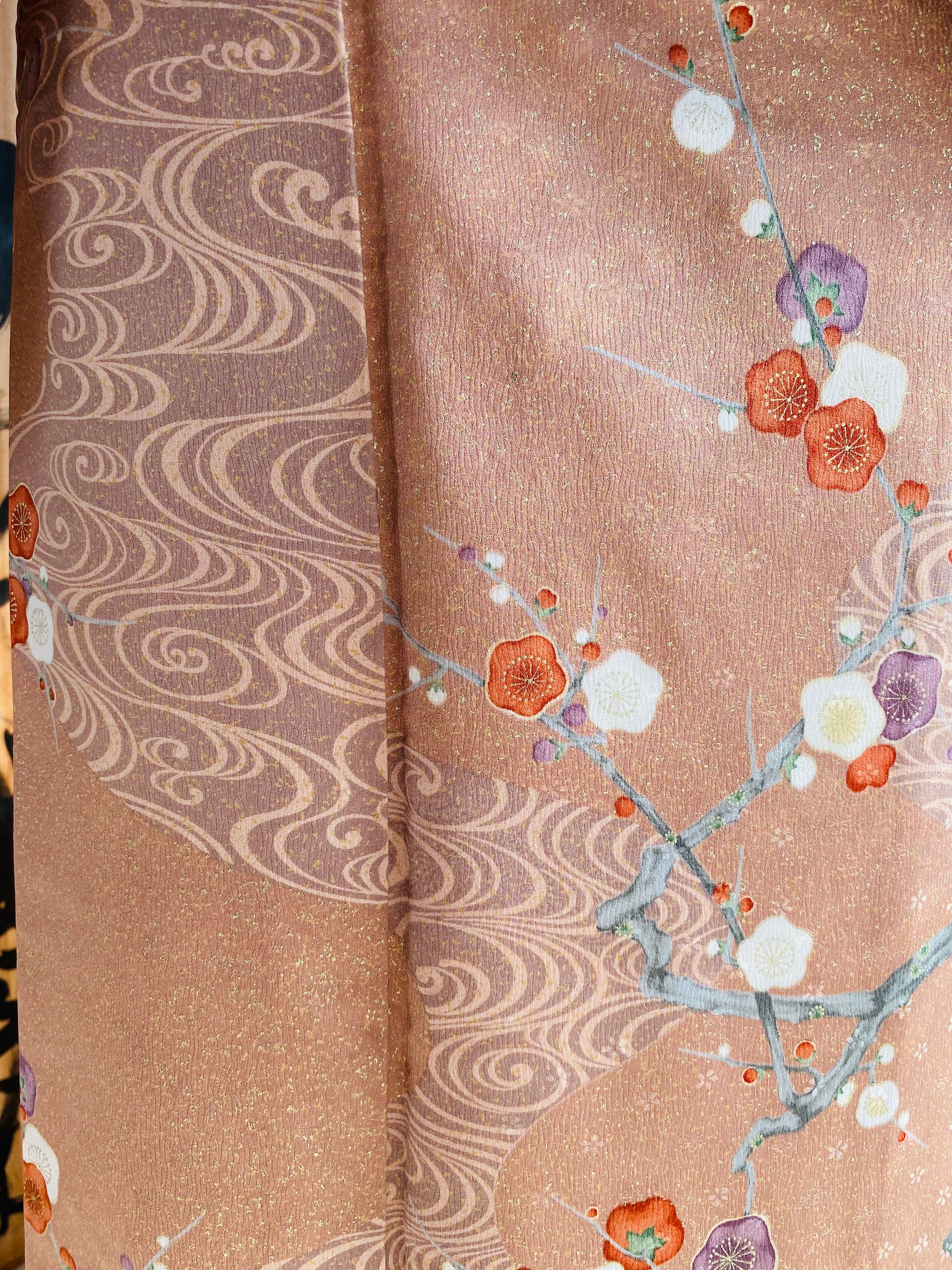 【新品未使用 金彩 光琳枝梅文様 正絹 小紋】